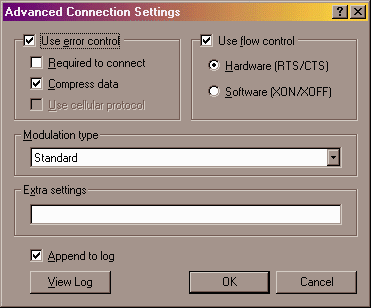 Other initialization string settings are available through various resources on the internet. Customized command sets should also be available from each respective modem manufacturer.