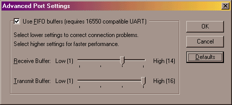 The larger buffer size means that the modem does not have to continually remind Windows to accept the data from the modem. Anything less than a 16550 UART chip is just begging for transmission problems. This is precisely why a 16550 UART is a minimum system requirement.